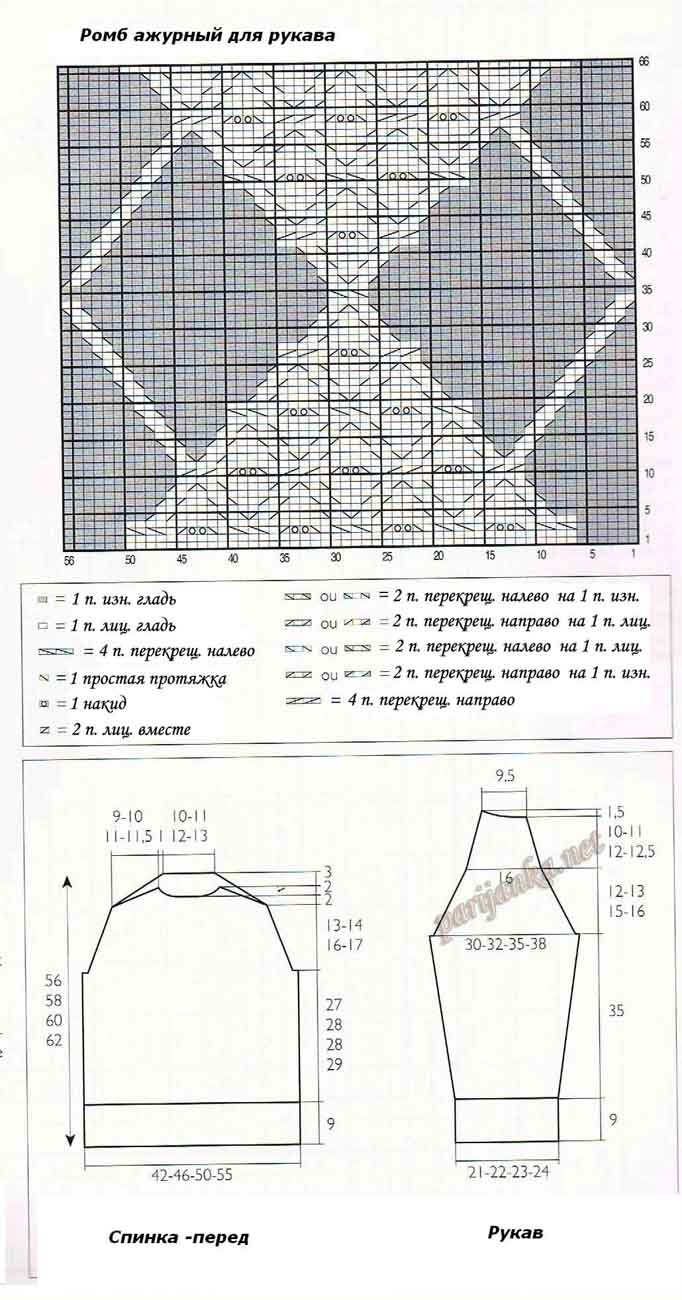 Затем для правого рукава убавить с правой стороны в каждом 2-ом ряду 1х17п.,1х5п.,закрыть оставшиеся 4 петли. (Вырез горловины для левый рукава вязать зеркально. )