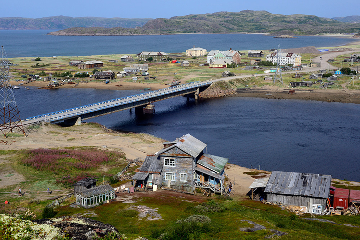 В поселке берега Териберки соединяет современный мост, с него открываются роскошные виды на окрестные природные пейзажи.