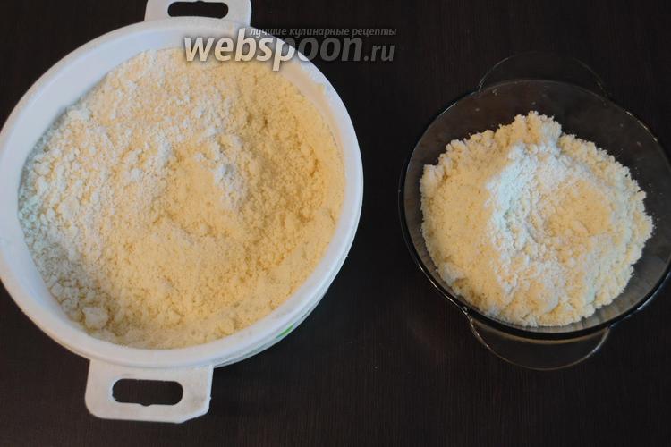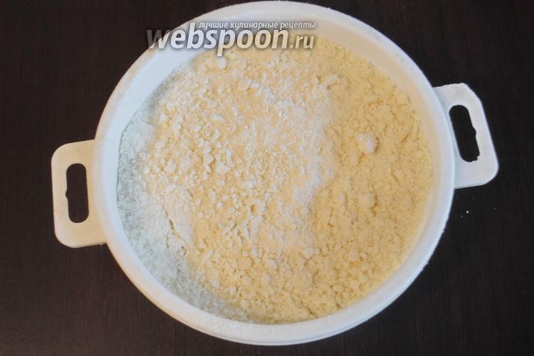 Добавить размягченное сливочное масло 125 г и растереть массу руками в крошку.