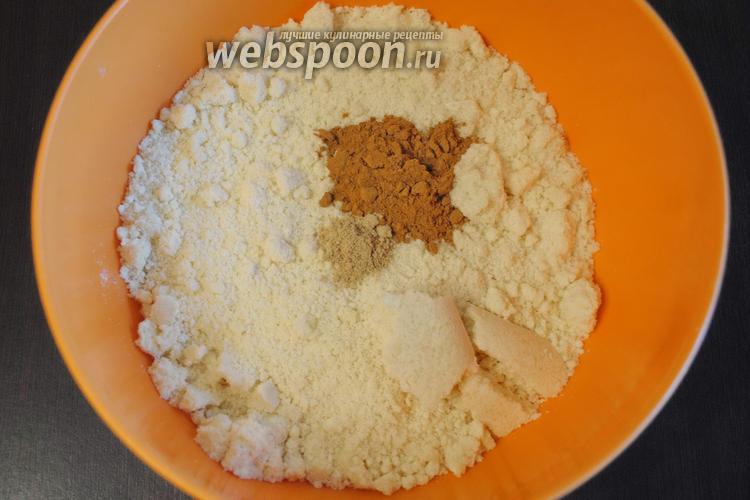 В оставшуюся крошку добавить специи: 1 ч. л. корицы и 0,5 ч. л. имбиря.