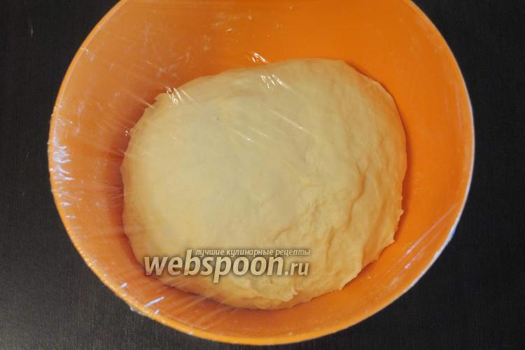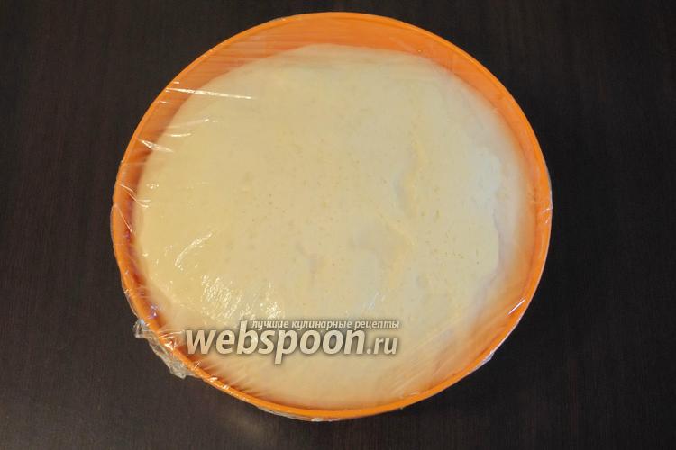 Замесить тесто, выложить в миску, накрыть плёнкой и поставить в тёплое место для подъёма.