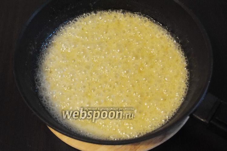 Пока тесто поднимается, подготовить карамель. Карамель приготовим в той же форме, в которой будет выпекаться пирог. Для этого в сковороде растопить 0,5 стакана сахара, 2 ст. л. мёда и сливочное масло (60 г).