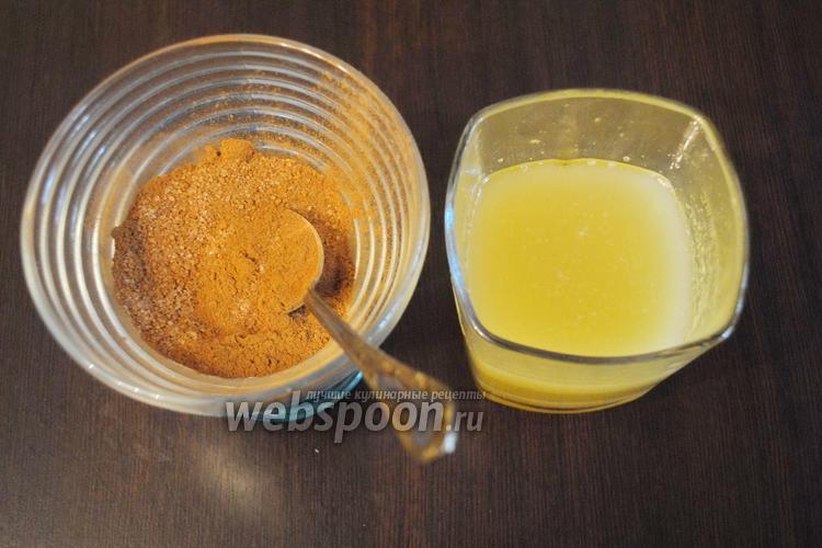 Для начинки смешать корицу (1 ч. л.), мёд (1 ст. л.), подсолнечное масло 2 ст. л., сливочное масло 30 г. По желанию можно добавить молотый имбирь 0,5 ч. л.