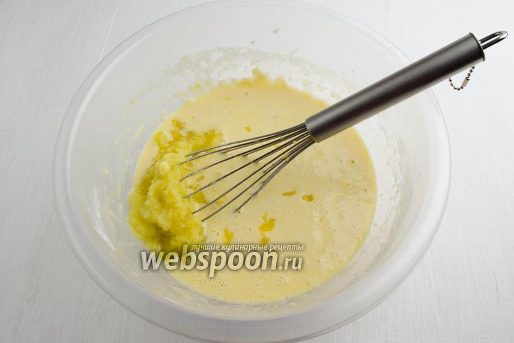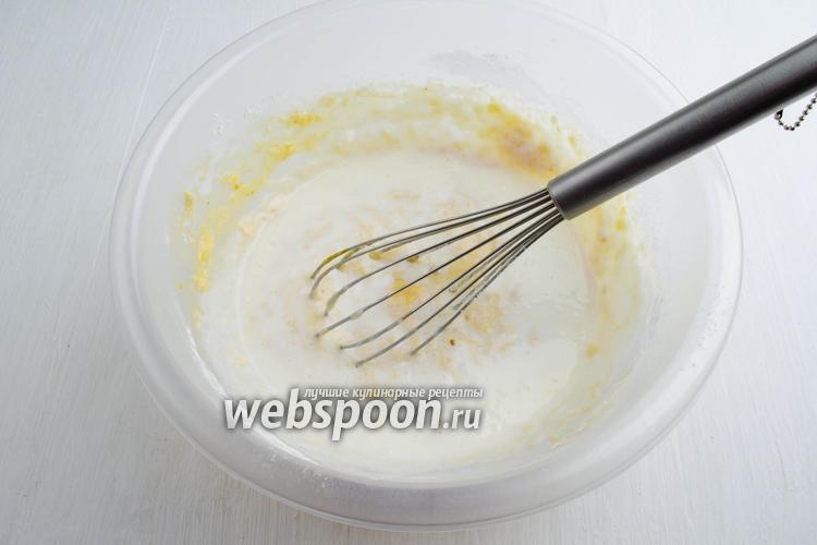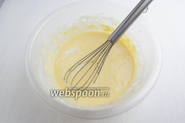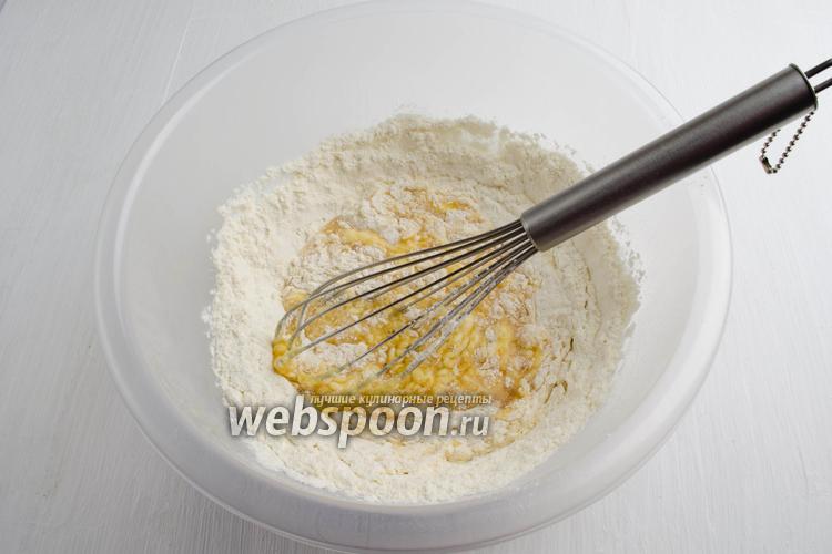 Добавить просеянную муку (150 г) с разрыхлителем (1 ч. л.). Перемешать.
