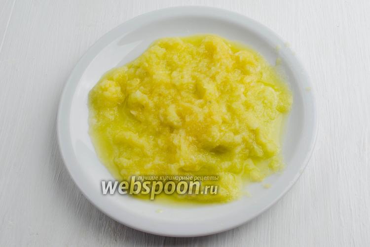 Тем временем кабачок вымыть, очистить от кожуры, натереть на мелкой тёрке до состояния пюре (200 г).