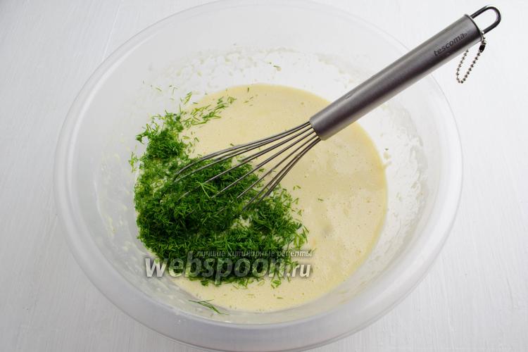 Добавить к тесту рубленый мелко свежий укроп (1 небольшой пучок). Перемешать.