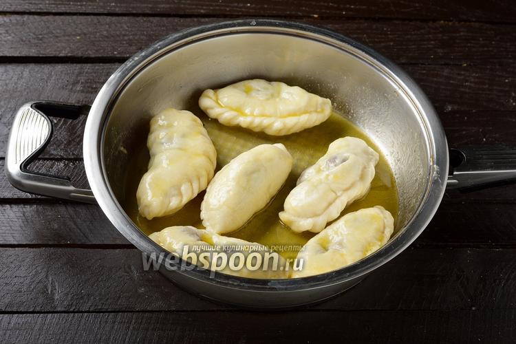 В большой кастрюле довести слегка солёную воду до кипения. Порциями, по несколько штук, опускать вареники в сильно кипящую воду. После всплытия вареников, варить их 3 минуты (вода при этом сильно кипит).