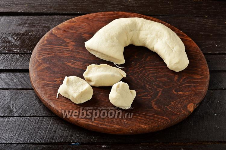 Тесто раскатать в жгут, который нарезать кусочками величиной с грецкий орех.