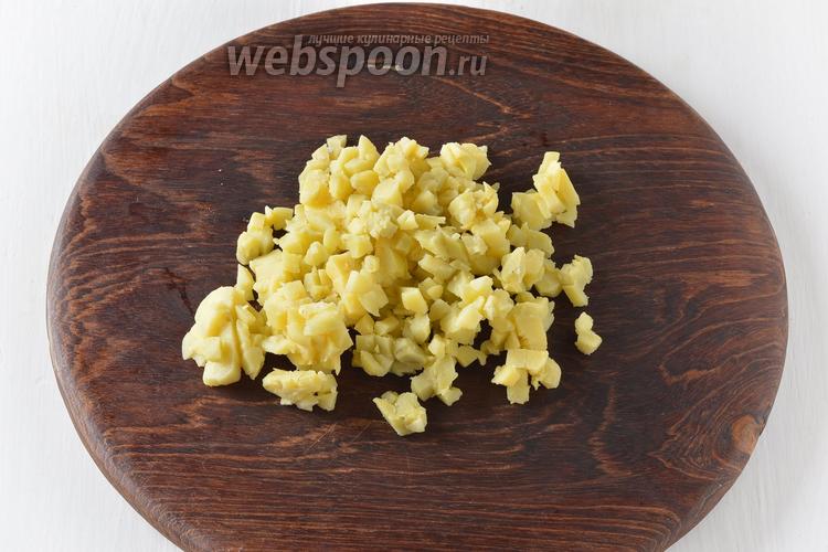 Картофель 70 г отварить в кожуре, очистить и нарезать кубиками.
