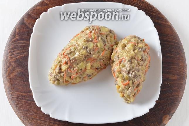 Выложить салат в форме «шишек».