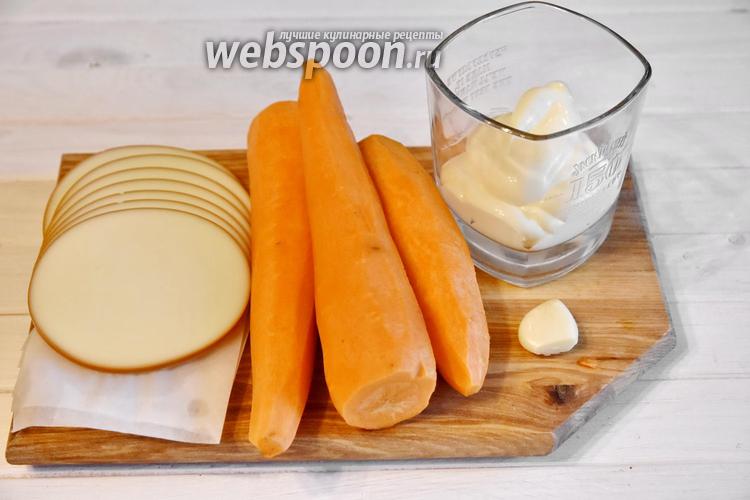 Подготовить продукты по списку: морковь, чеснок, майонез, колбасный плавленный сыр.