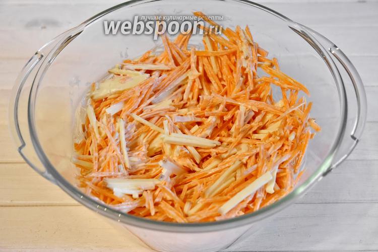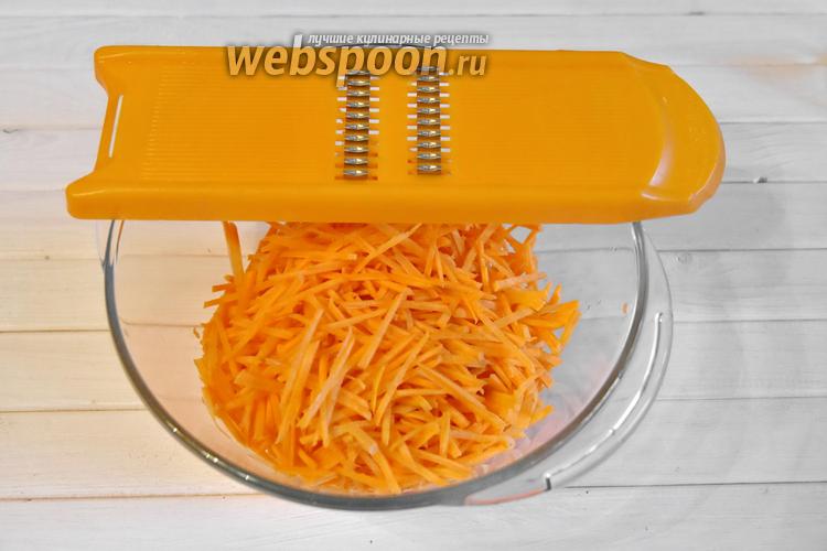 3 моркови очистить и натереть на тёрке для корейских салатов, не нужно делать длинную соломку.