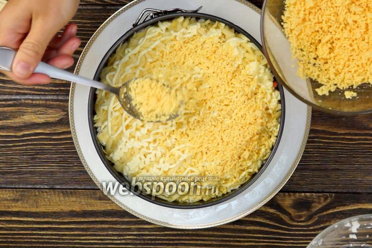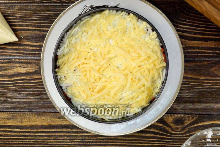 5 слой — натёртый твёрдый сыр и слой майонеза.