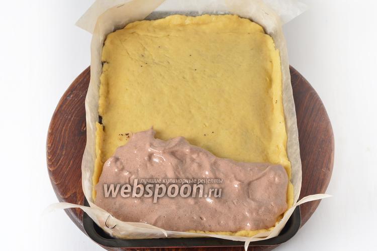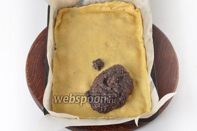 Накрыть вишнёвую начинку вторым пластом теста и выложить сверху маковую начинку.