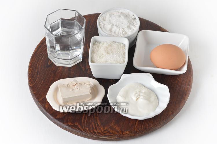 Для приготовления теста нам понадобится мука, сахар, желтки, живые дрожжи, сливочное масло, сметана, вода.