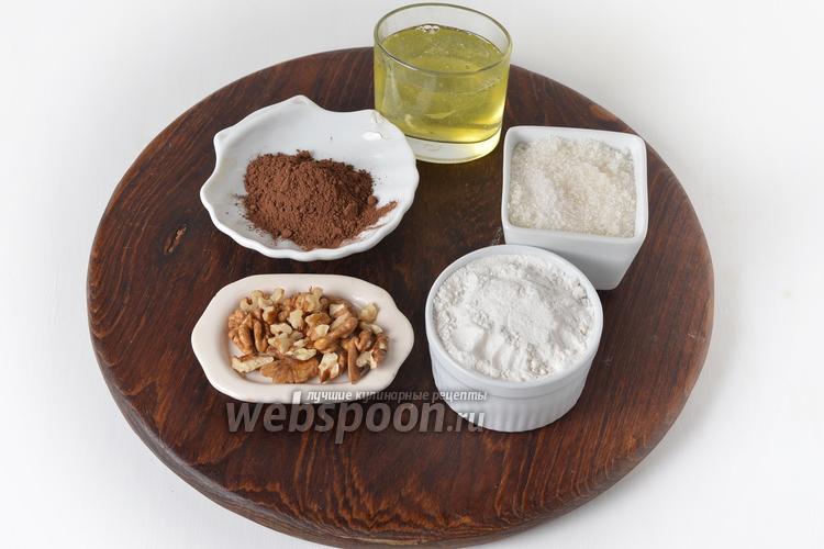 Для приготовления ореховой начинки нам понадобятся грецкие орехи, какао, мука, сахар, белки.