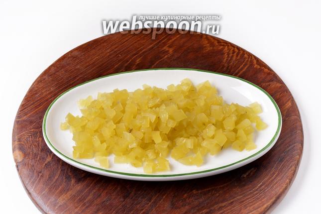 Огурцы очистить от кожуры и нарезать мелкими кубиками 120 грамм.