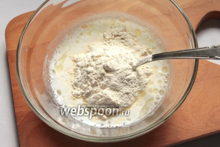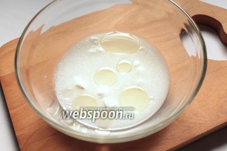В воду добавить сметану, растительное масло 1 ст. л., соду и соль. Размешать.