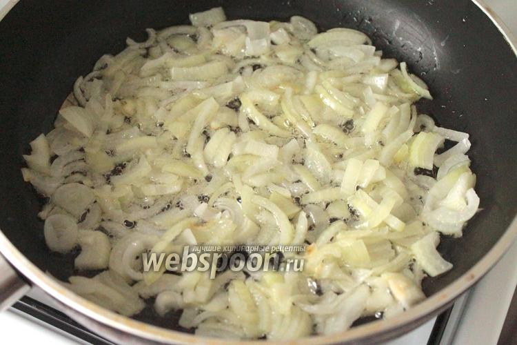 На растительном масле обжарить нашинкованный полукольцами репчатый лук до начала изменения цвета.