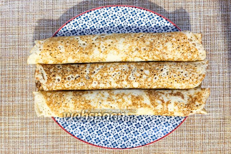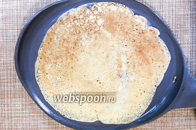 Блинчики готовьте на блинной сковороде, смазанной подсолнечным маслом (1 ст. л. на всю партию блинов). Поджаривайте до золотистой корочки с обеих сторон.