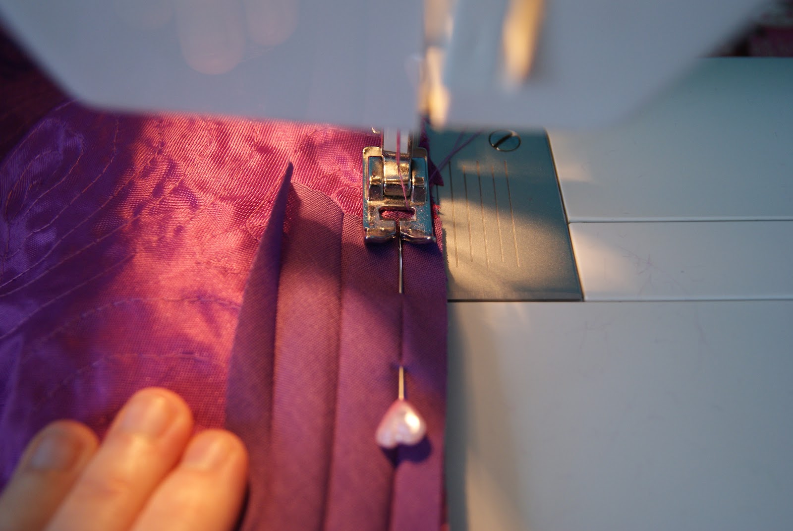 :: Конца, где вы topstitched, место, которое только за одну из боковых швов лифом и с зигзагообразными стежками пришить его на платье, так что, когда, когда створка выдвигается зигзаг будут покрыты за счет створки. Повторите эти действия для второй створки.