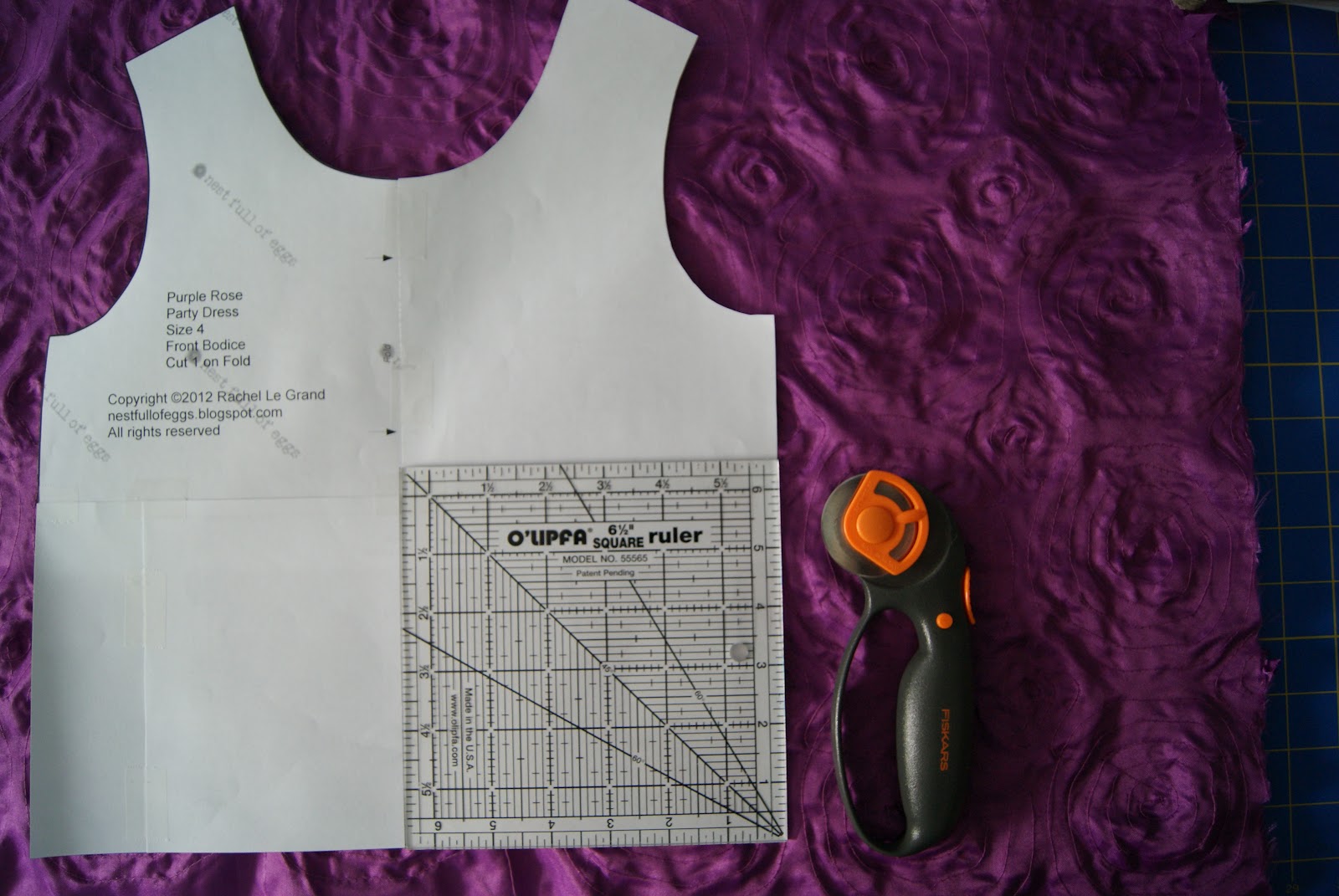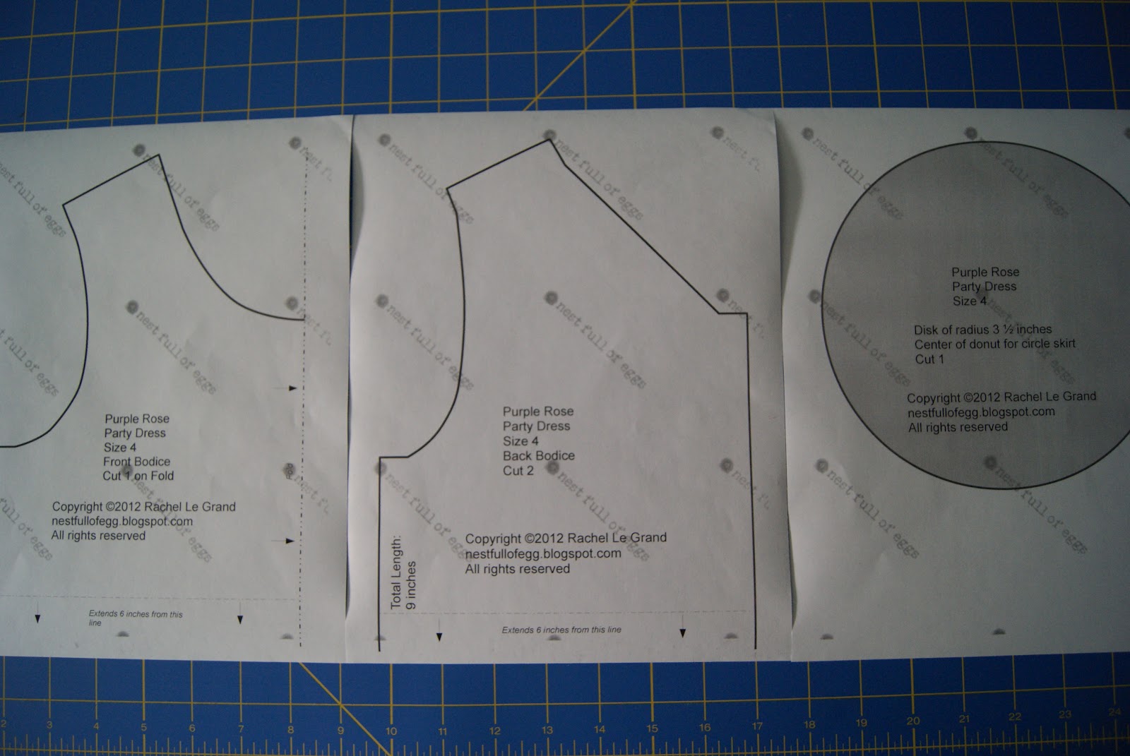 :: Распечатайте выкройки. Убедитесь, что добавили 6 дюймов в нижней части корсажах части, так что боковые швы измерения в общей сложности 9 дюймов. Ряды ткани розетками довольно толстый, поэтому трудно вырезать в сложенном состоянии, поэтому я рекомендую печатью 2 экземпляра фронт лифом и лентой вместе. Я также рекомендую использовать линейку и фреза для вырезания части модели, которые имеют прямые линии.