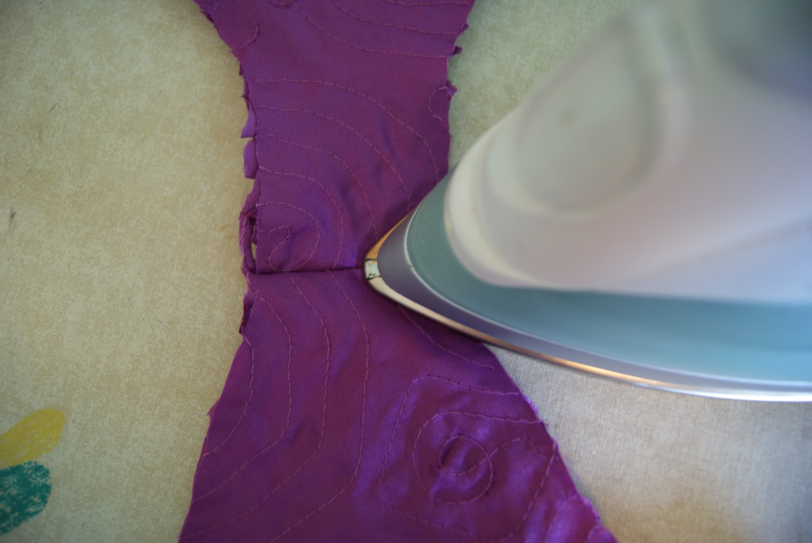 Клип :: углах и для токарных инструментов (я использую коктейль соломы и палочки для еды), Поверните правую сторону, нажмите с железом. Заправить необработанные края, нажмите с железом, и настрочить.