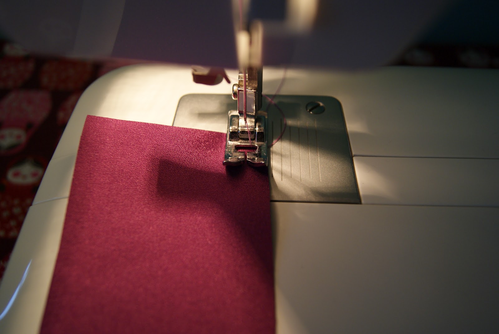 :: Сложить каждый пополам, правой стороны вместе с 1/4 "припуск пришивать каждой из длинных сторон.