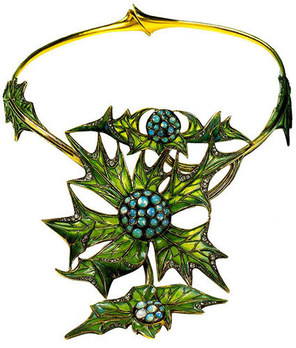Драгоценные металлы, лепестки из перламутра, тычинки с нанеченными бриллиантиками, изделия Люсьена наполнены сдержанностью, не характерной для мастеров периода модерна.