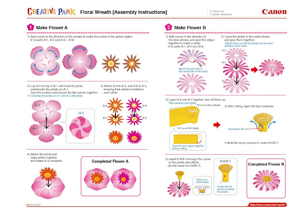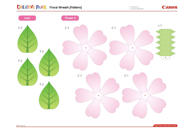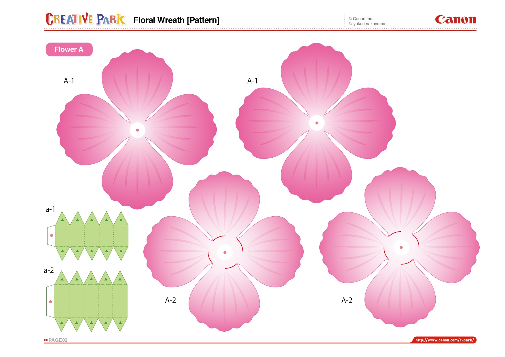 Цветочный венок из бумаги. Цветные шаблоны для распечатки Yukari Nakayama.