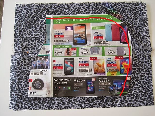 | Вырезать капюшон. См красную линию для того, где шить. |