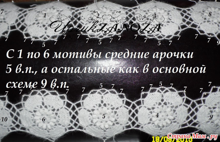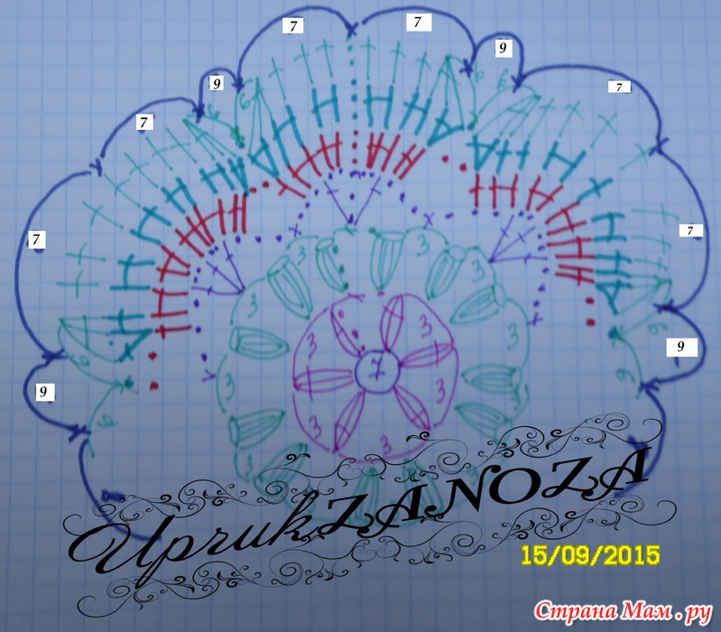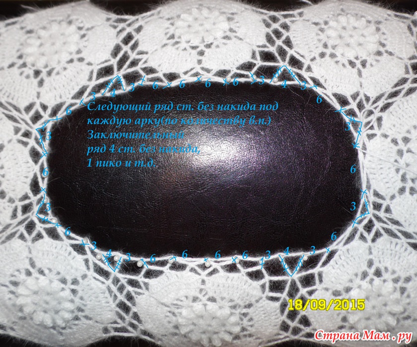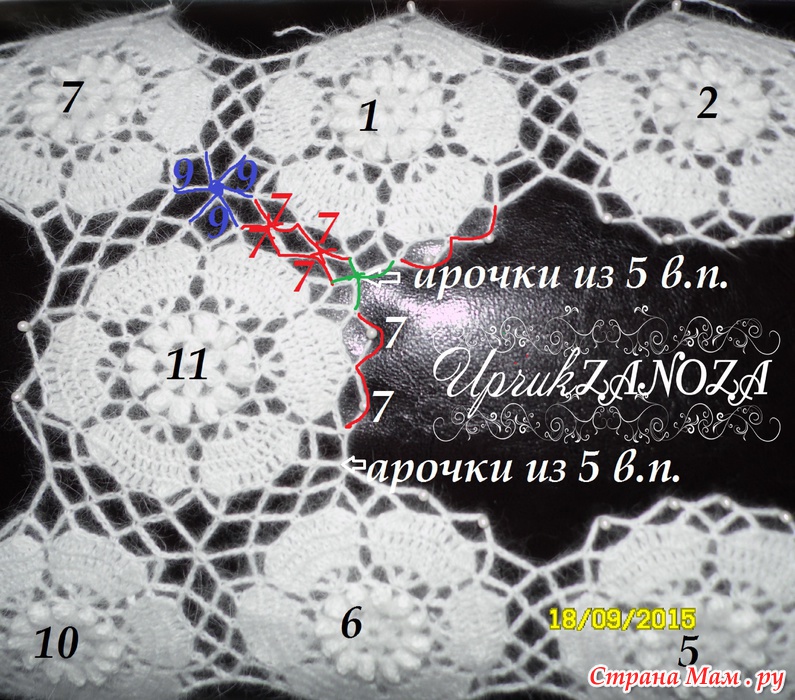 Там кружочками отмечены места где вяжем не 9 воздушных петель, а 5