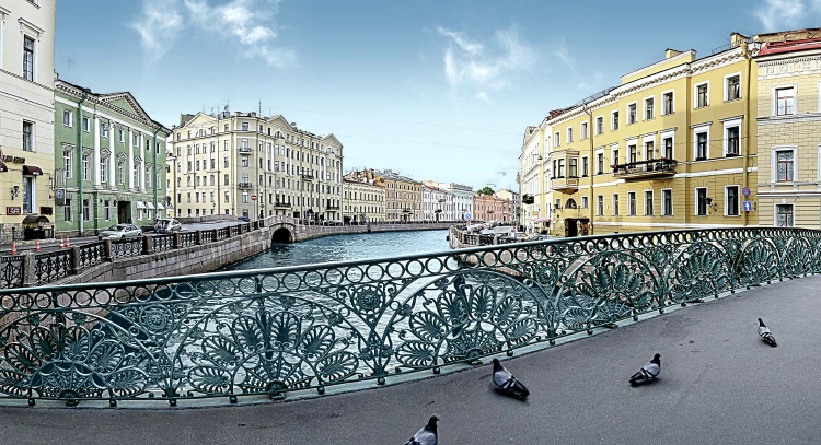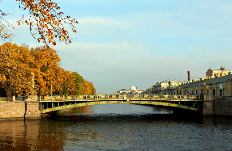 Видимо, чтобы разнообразить палитру городских красок, ещё в XVIII в. через Мойку были перекинуты