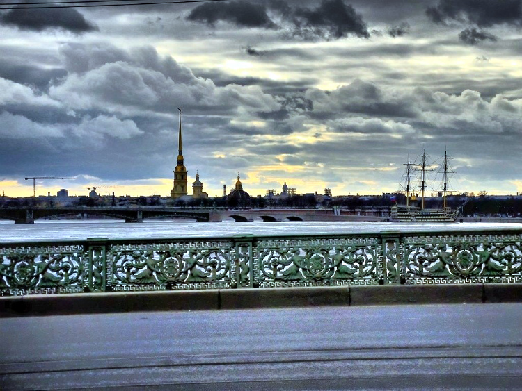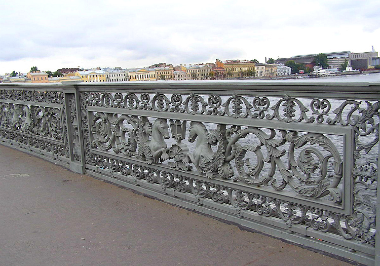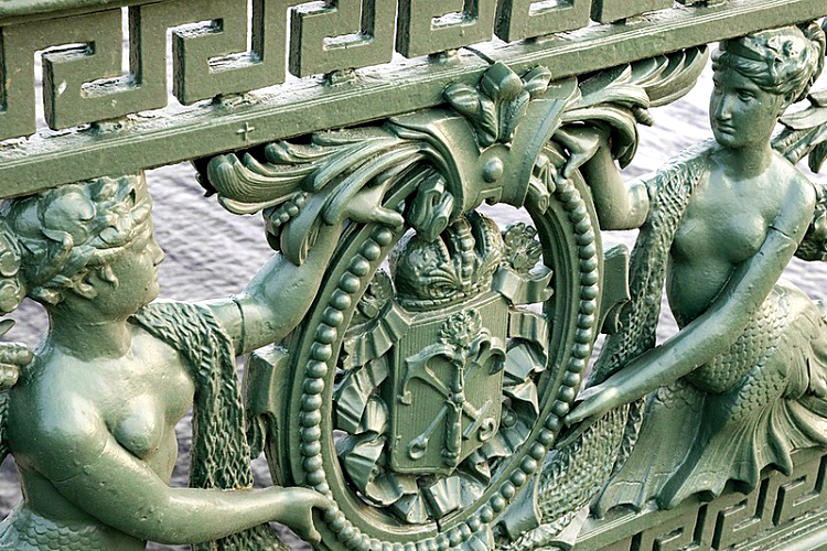 Литейный - тоже разводной мост, правда, здесь поднимается лишь одна секция. Зато у него потрясающей красоты ажурные решетки. Как тут не вспомнить Пушкина: «…твоих оград узор чугунный»! Решетки действительно уникальные, с русалками, которые попарно держат щит с гербом Санкт-Петербурга, а их хвосты вплетаются в искусный растительный орнамент. С Литейного моста открывается один из самых завораживающих видов на город.