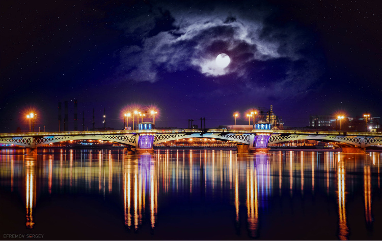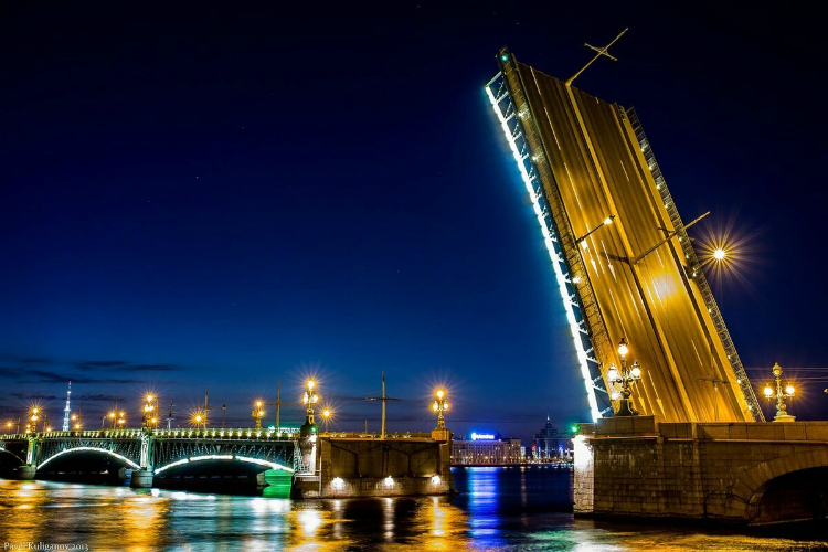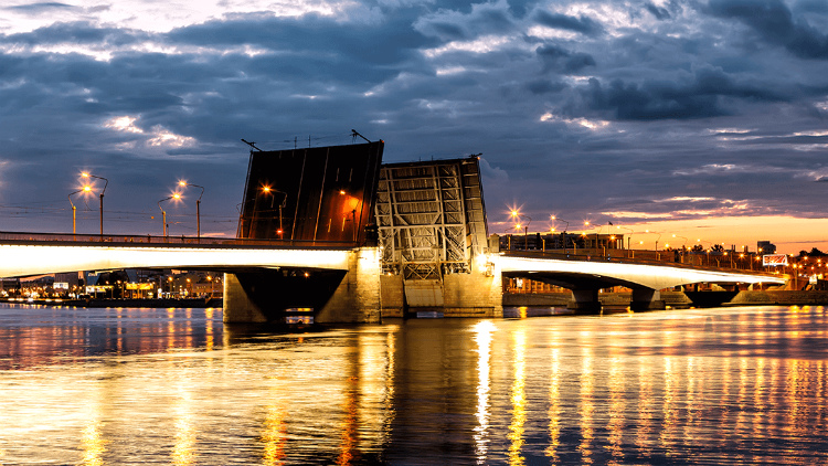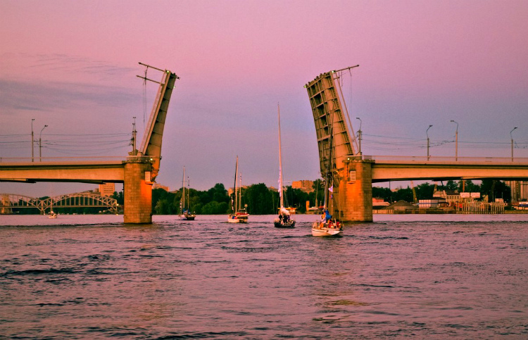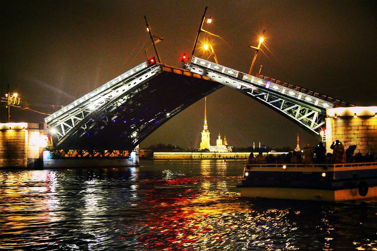 И, действительно, в ночном сиянии подсветки из тысячи ламп, когда в просвете крыльев виднеются купола Смольного собора, сказочный вид переправы завораживает. И сами собой рождаются легенды. Одна из них гласит, что строители заложили в конструкцию моста одну заклепку из чистого золота – на удачу, а чтобы ее не нашли, сверху закрыли тонким слоем стали…