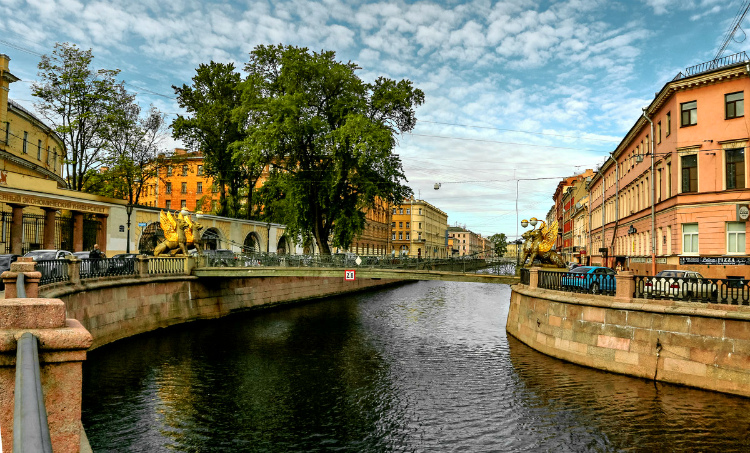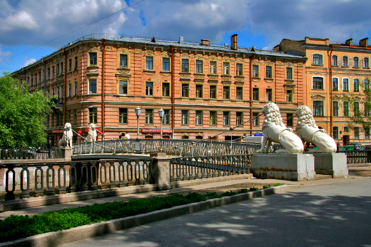 Львиный мост расположен в очень живописном месте, где открывается прекрасный вид на изгибающийся канал и открывающуюся романтическую панораму, недаром его так любят и коренные петербуржцы, и приезжающие сюда туристы.