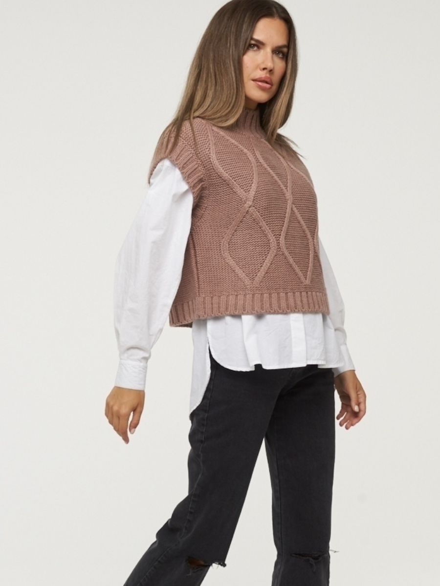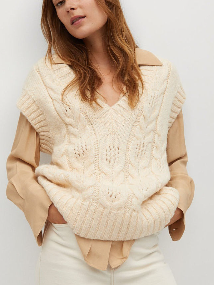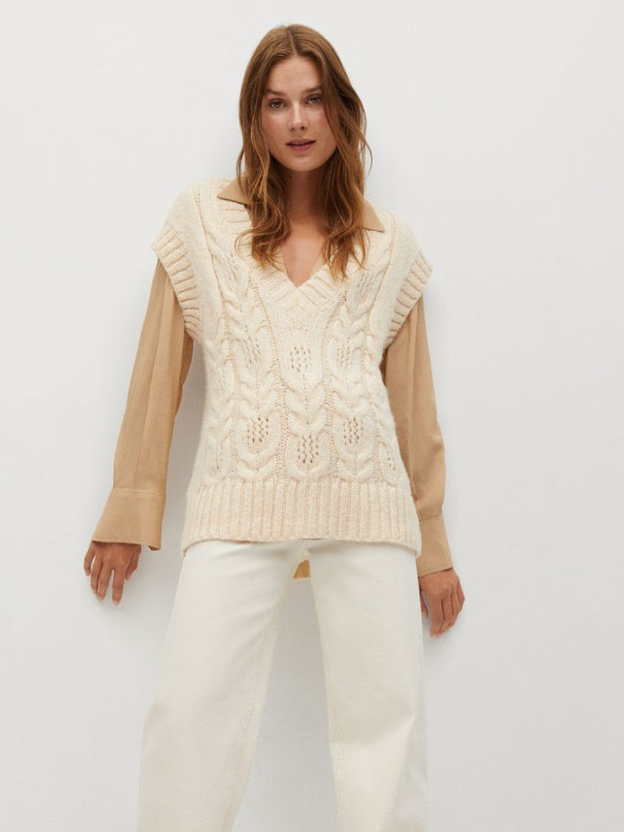Вторая безрукавка - российского бренда вязаного трикотажа VAY. Это самая простая модель из всей подборки, но заслуживает внимания. Она хорошо подойдет как для офиса, так и для повседневной носки с джинсами.
