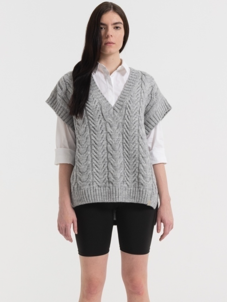 А это - аналогичная безрукавка с V образным вырезом в оттенках серого цвета: