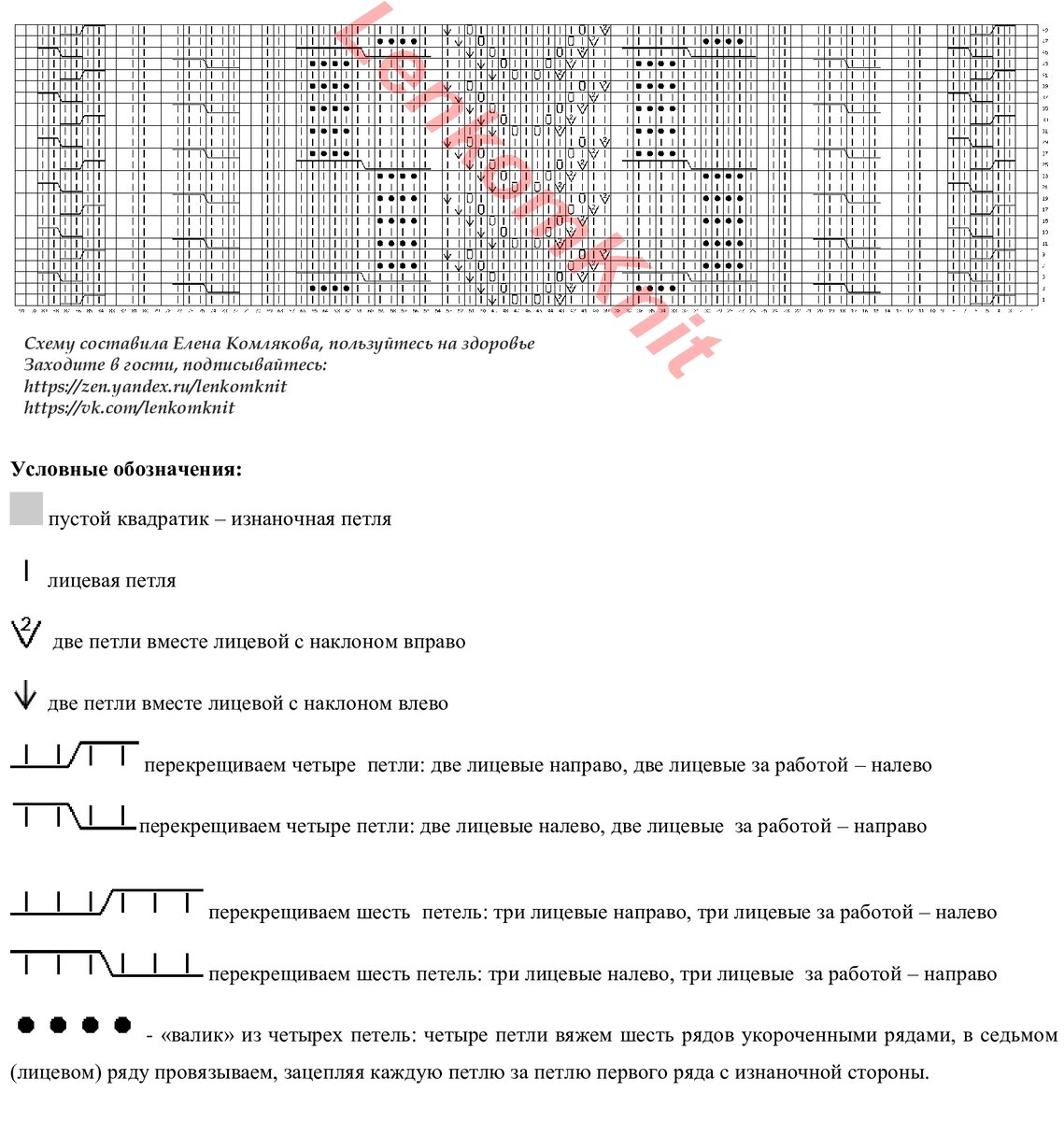 Это - схема узора. По краям вяжутся косы с шишечками и обычные косы из шести петель (они есть на схеме).