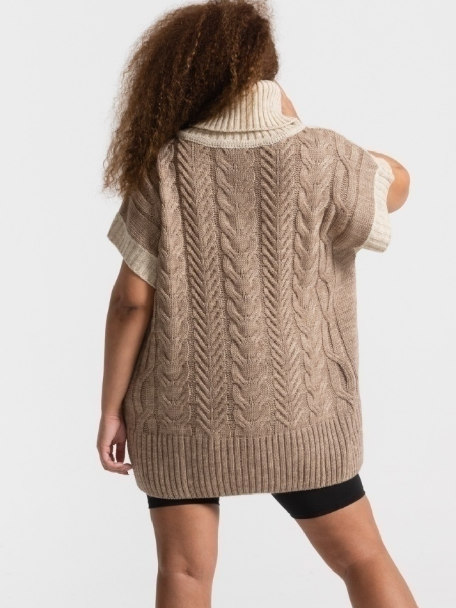 Первый вариант - просто однотонная безрукавка. С высоким воротником-гольф, очень свободная.