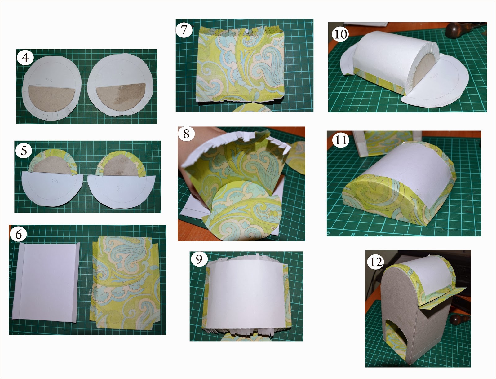 всё вырезала, боковушку(на клей) и крышу(на малярную ленту, что бы она свободно закрывалась-открывалась) приклеивала к основной выкройке.