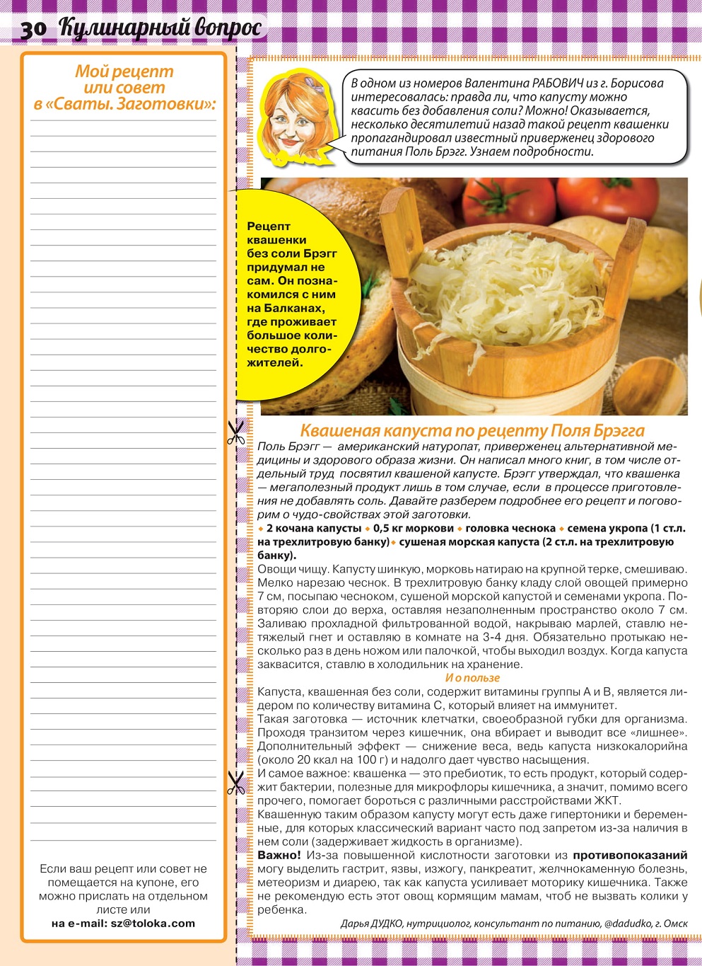 рецептов заготовок от Сватов в каждом номере: соленья и маринады, салаты и ассорти,