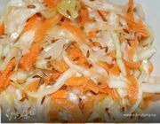 Нашинкуйте кочан капусты весом примерно 1 кг, а 1 яблоко нарежьте тонкими дольками или небольшими кубиками. Добавьте к капусте 1 ч. л. сахара и 0,5 ст. л. соли, разомните ее руками, дайте полежать полчаса и снова хорошо разомните. Однако не перестарайтесь, поскольку «перемятая» капуста станет слишком вялой. При желании добавьте немного тмина или других специй.