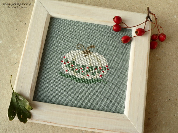 Недавно Ивита разместила в своём блоге приглашение на осеннее чаепитие. Раздумывала я не долго: буквально за один вечер была вышита прелестная белоснежная тыковка, на которую я засматривалась уже очень давно. И меня не остановило даже то, что из всех ниток, необходимых по ключу, у меня был только 3865 ))