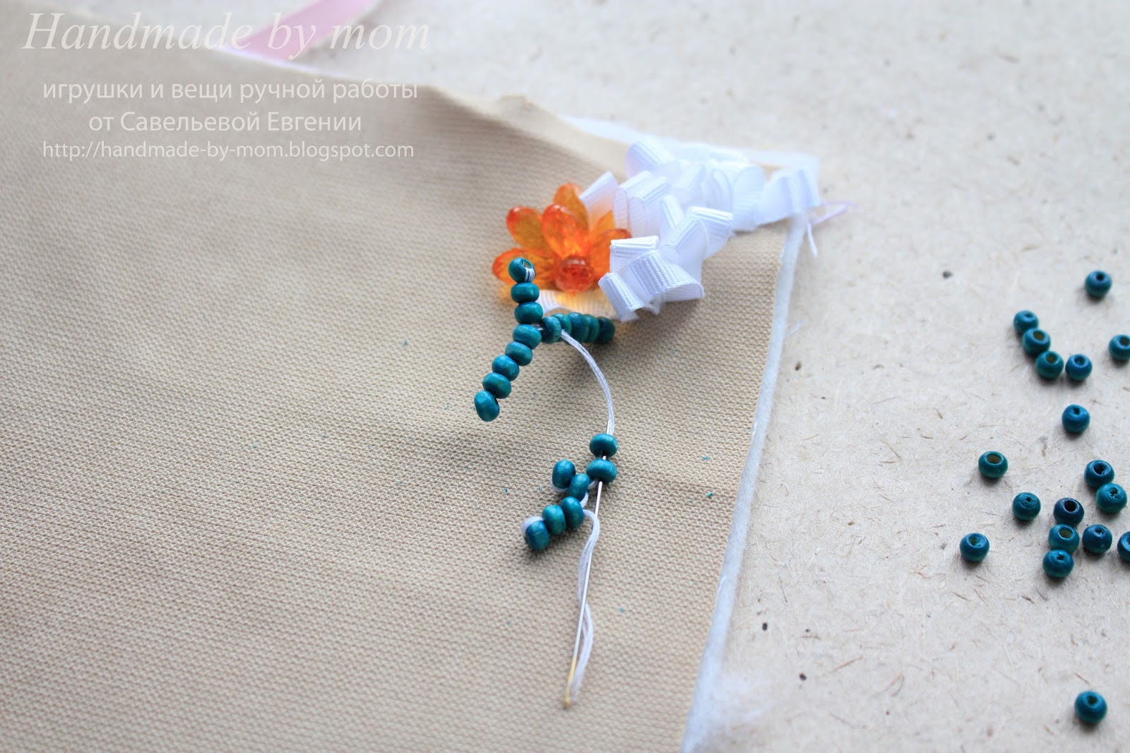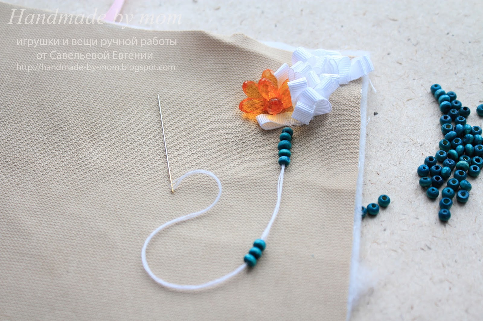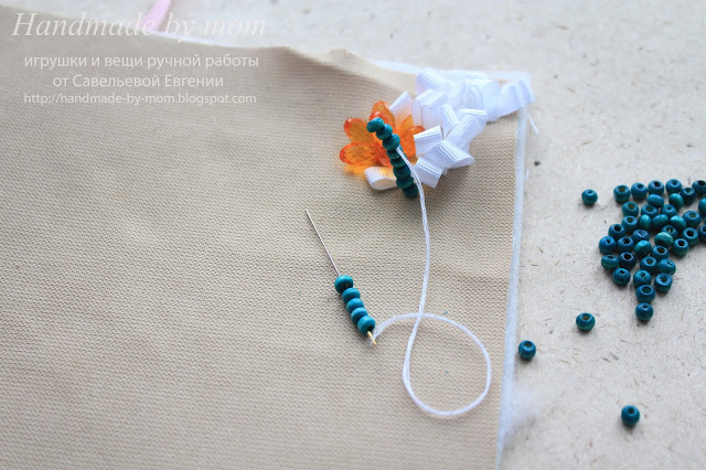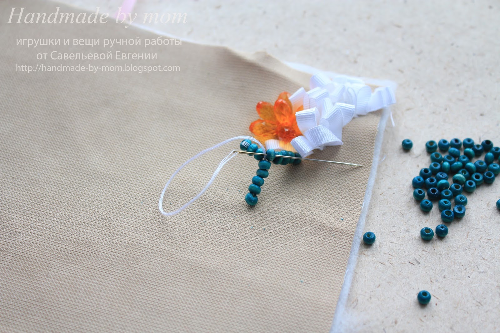 Потом пришиваем сверху черные бусинки глазки. 2 мм у меня.
