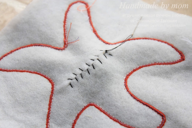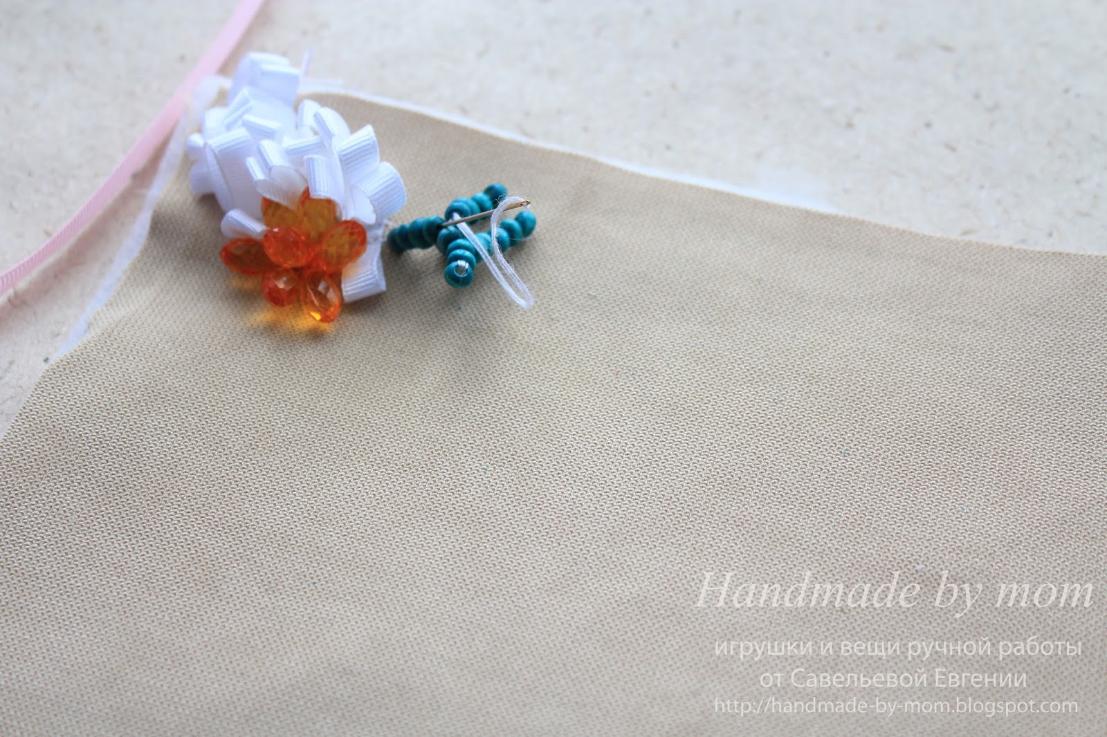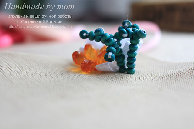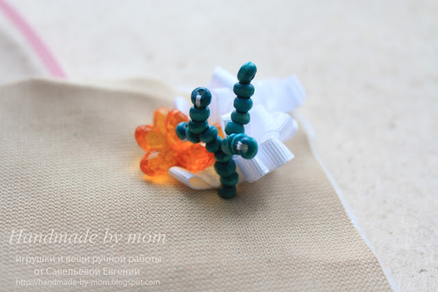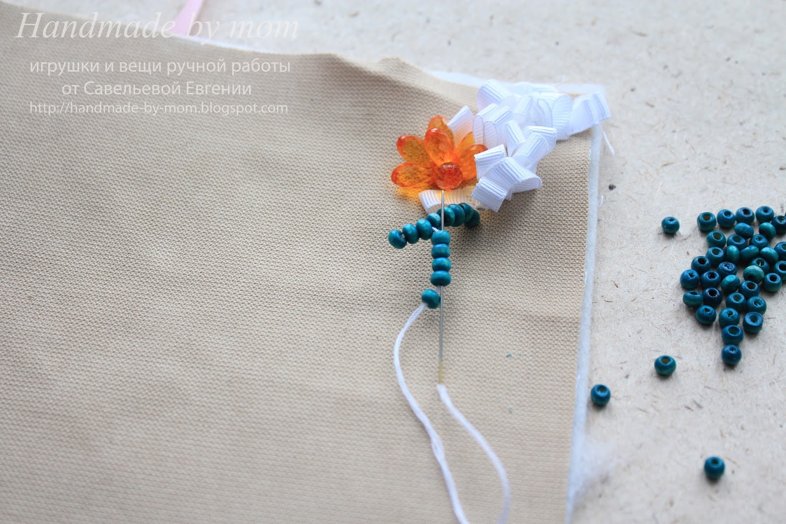 Потом пришиваем сверху черные бусинки глазки. 2 мм у меня.