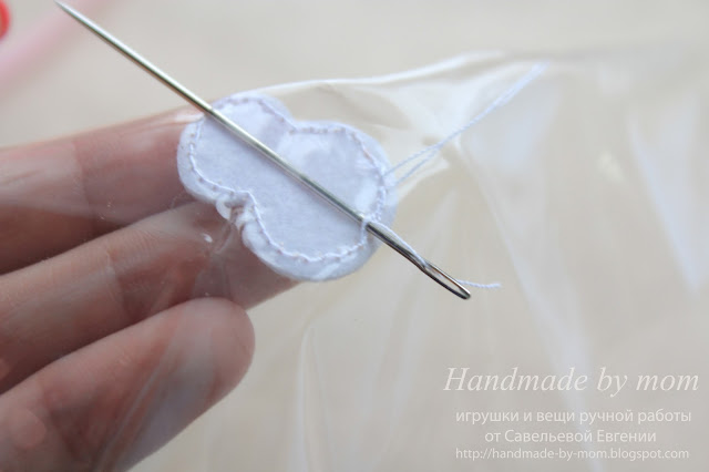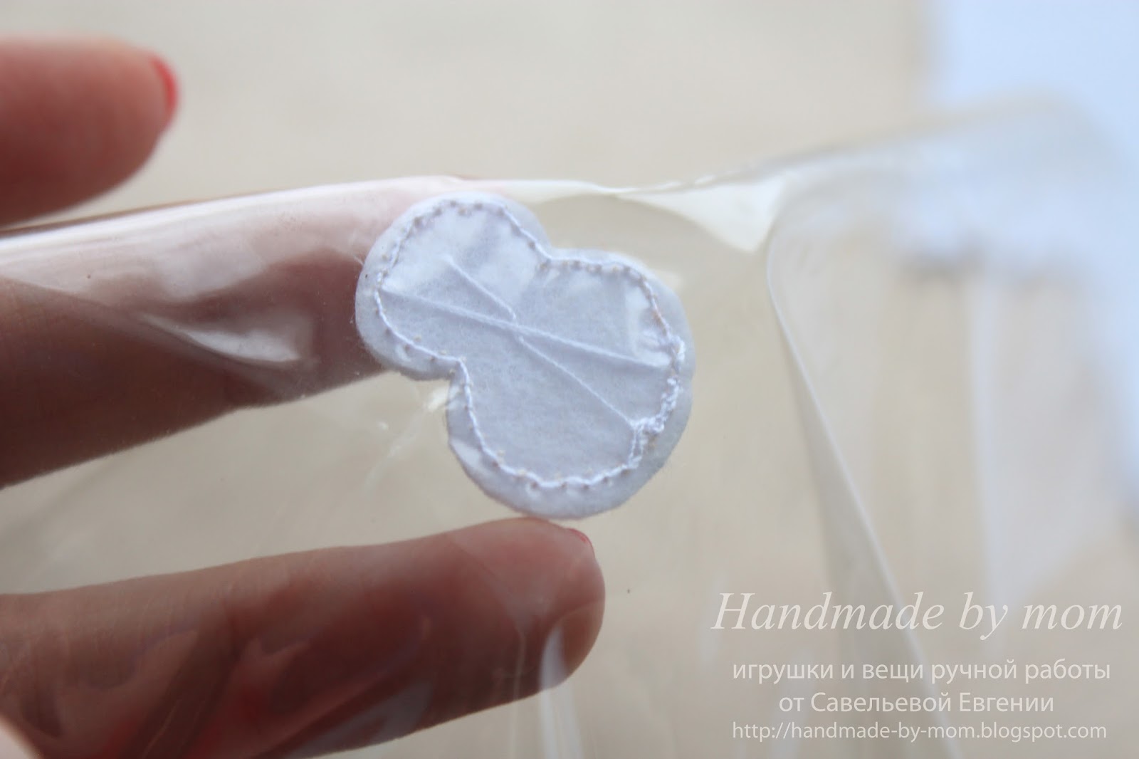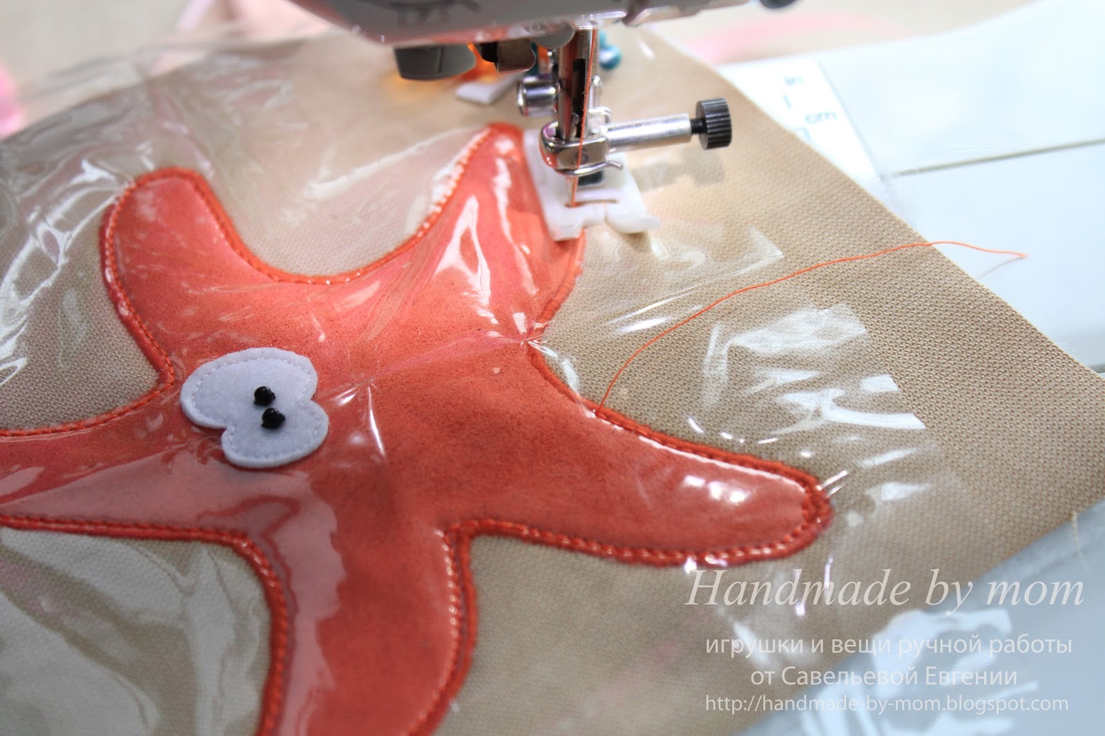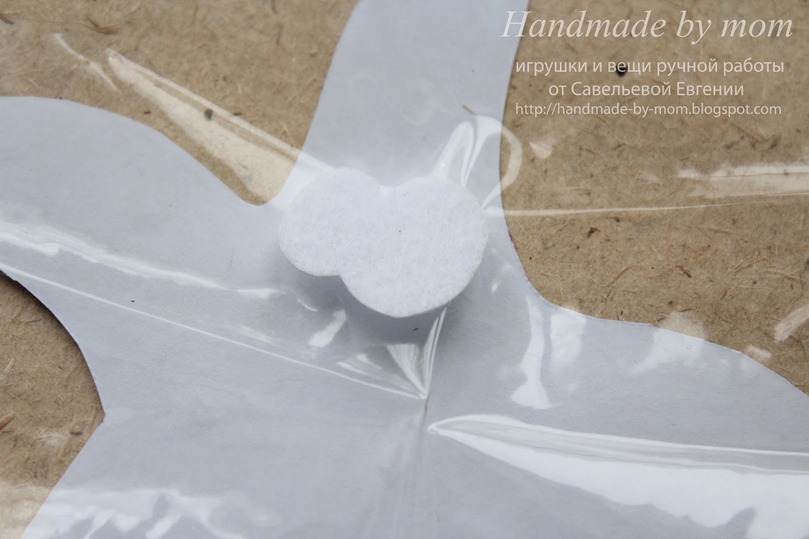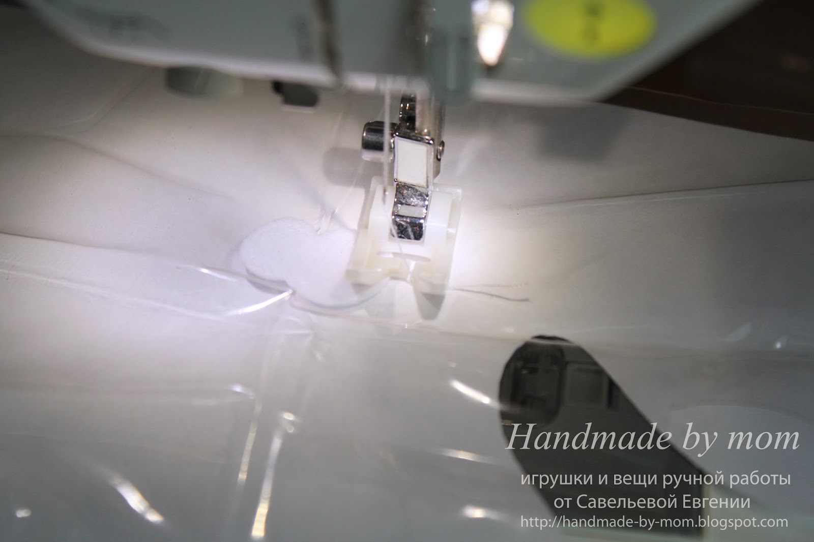 Под пленку кладем лист бумаги, пришиваем. Я для этих целей использую тефлоновую лапку специальную, её и для кожи искусственной тоже. Она не прилипает, а скользит по такому материалу. Стежок выбираю 1.8 мм для маленьких деталей.
