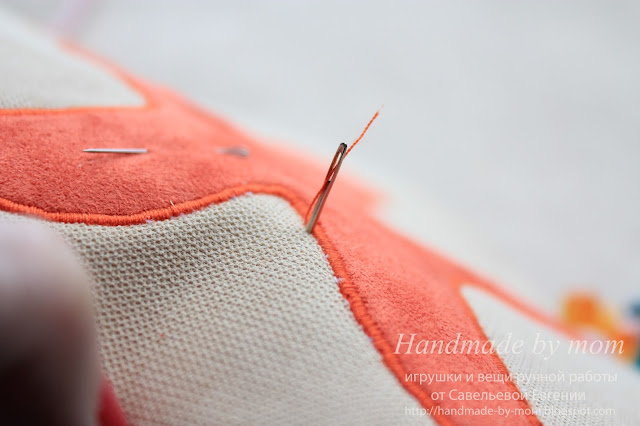 У меня это плотная ткань, уже проклеенная, если у Вас хлопок, то лучше проклеить его дополнительно для жесткости, так аппликации удобнее пришивать, когда они поплотнее, еще дополнительно можно обработать края ПВА клеем, чтобы не ткань не сыпалась, как учила Таня в своих МК.