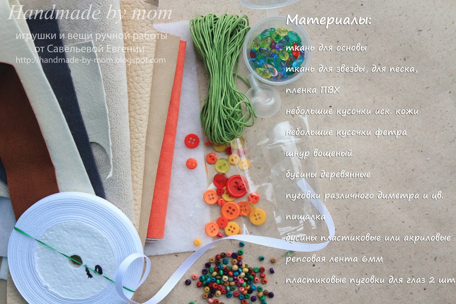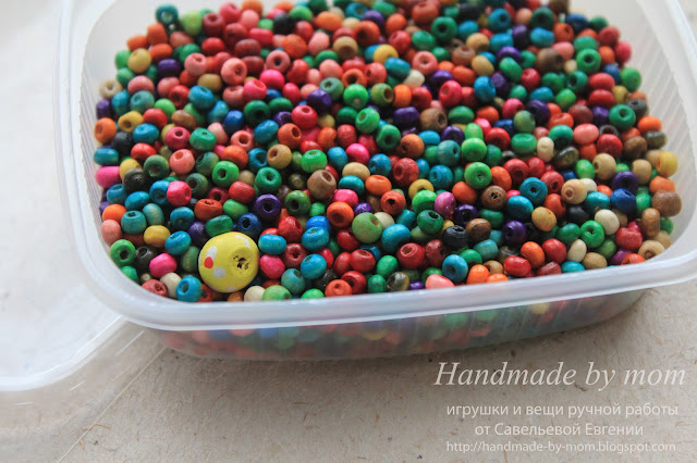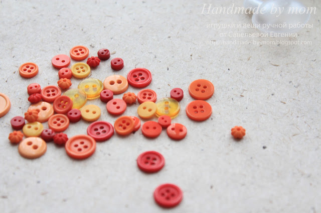 Готовим пуговки для наполнения морской звезды. У меня тут еще и бусинки, от желтого до красного цвета. Разным диаметром.