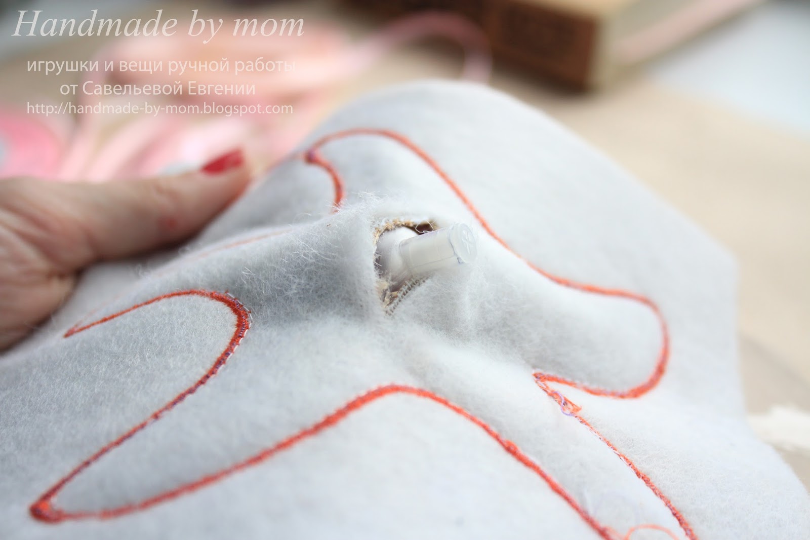 Вставляем пищалку. Сзади делаем надрез, вставляем пищалку, вручную зашиваем.
